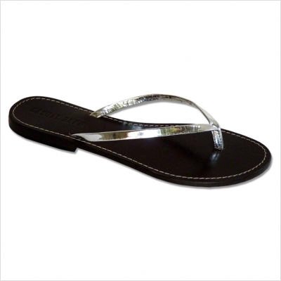 Women's Skinny Leather Flip Flop in Metallic Silver Color: Green Patent, Size: 6 Reviews