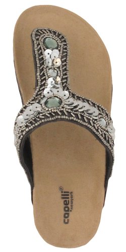 Capelli New York Metallic Upper Pu T-Strap On Faux Suede Ladies Flip Flop Pewter Grey 8 Reviews