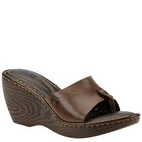 - A cute slide on thong sandal with rounded wedge heel and slight platform